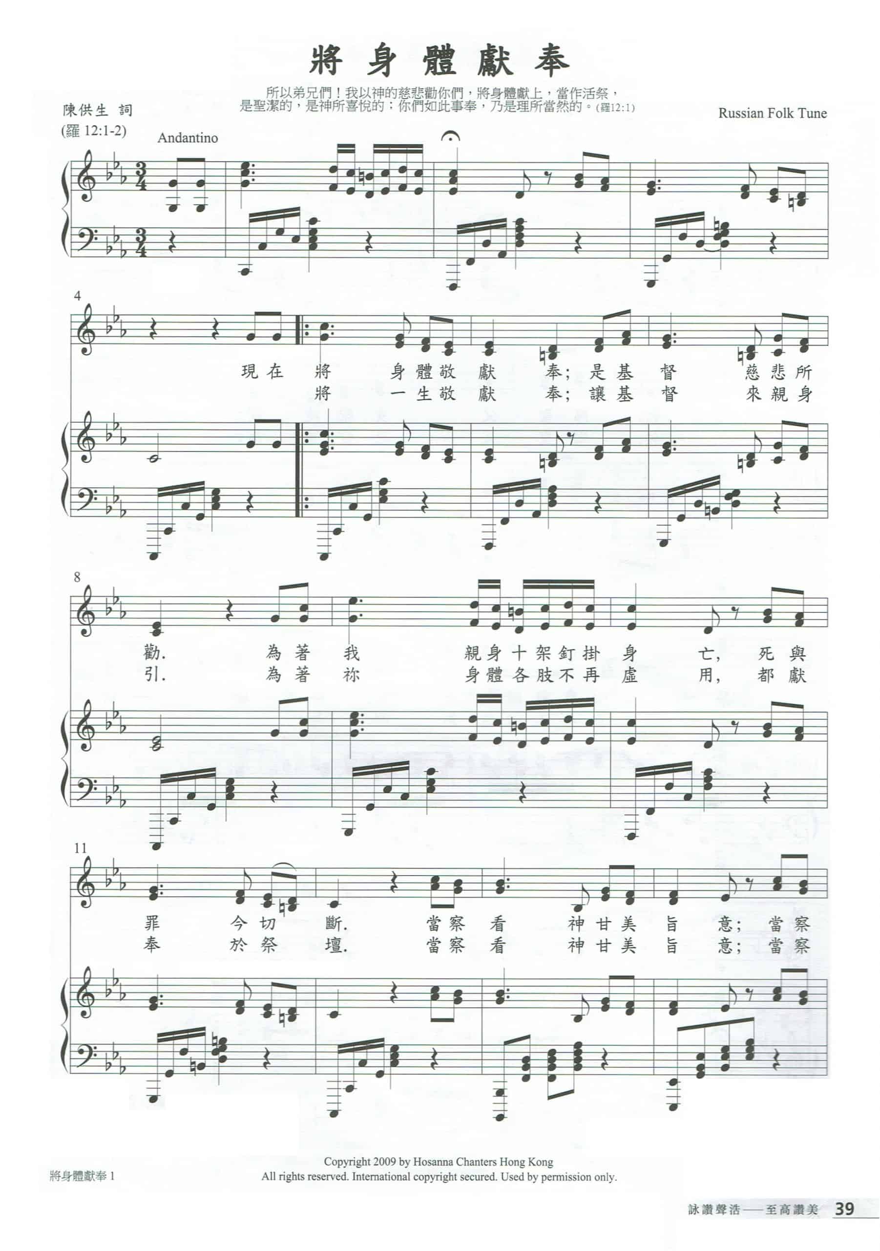 旋律優美,音域不算高,不太難唱!善用3連音,肯定了神是、為我們、應許我們<不怕遭害......實能安撫心靈。只是3連音節奏要唱得準確及肯定,帶出詩歌意思。同時,我十分欣賞作曲者/填詞者透過聲部的回應---也不怕遭害、都安慰我,激勵我們對上帝主權的完全信靠。