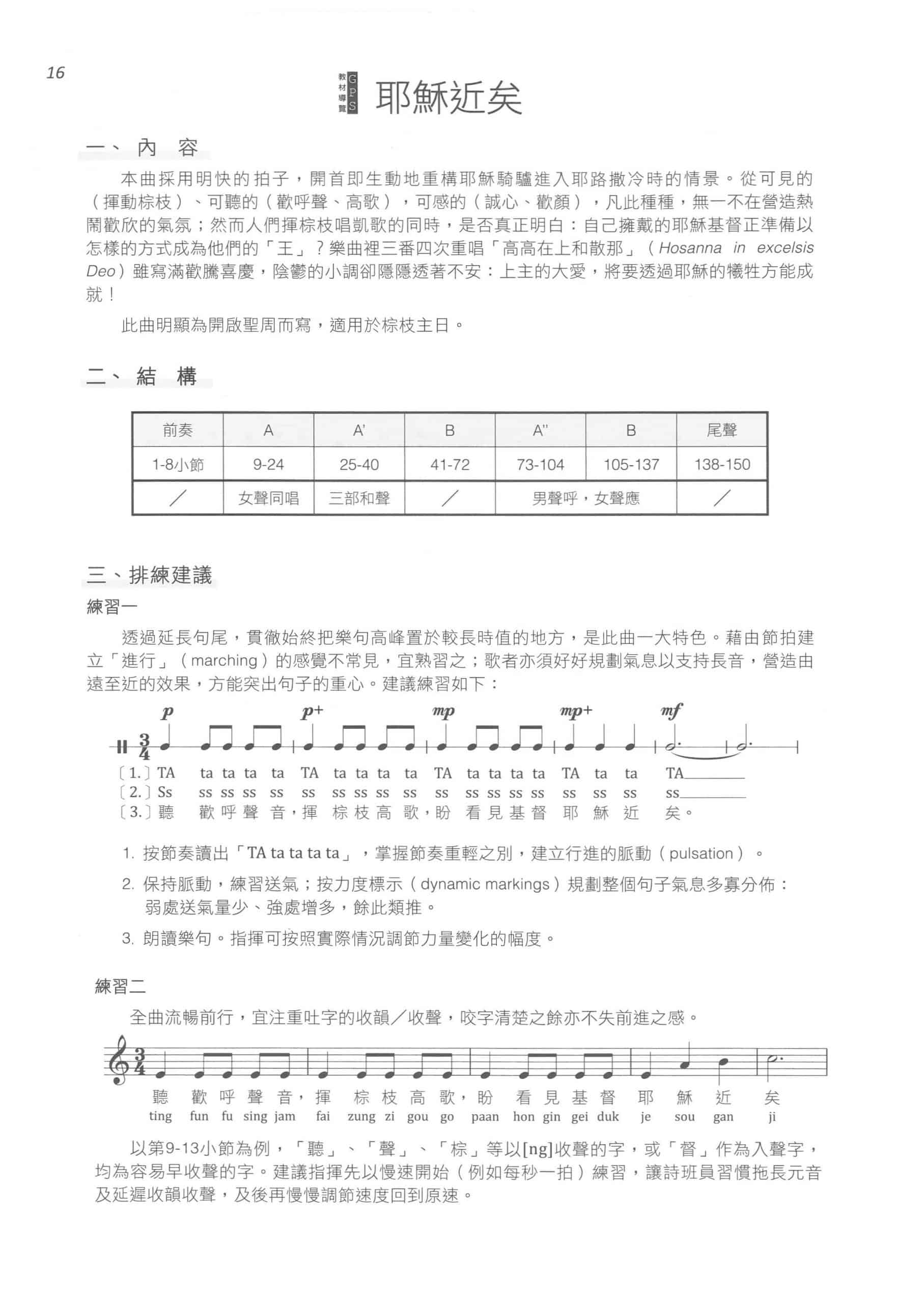 此曲明顯為開啟聖周而寫,適用於棕枝主日。
