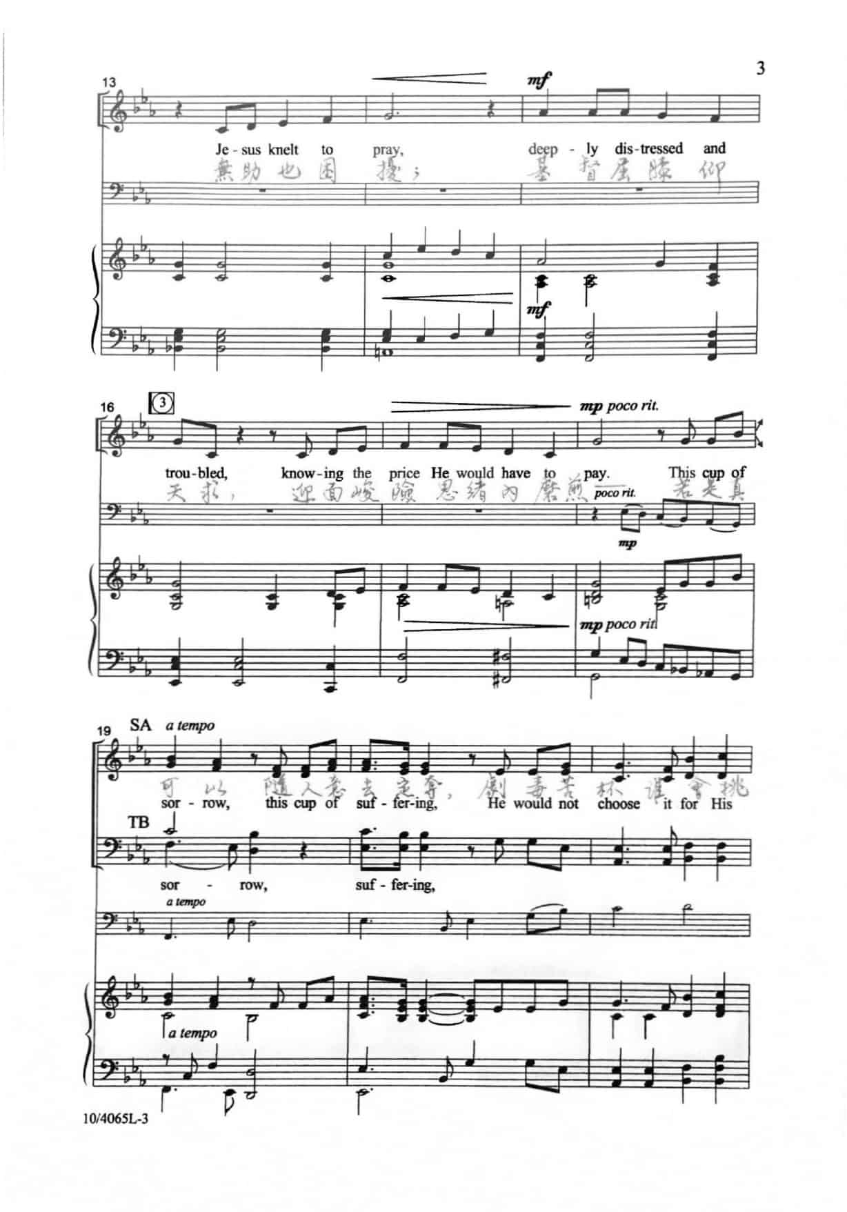 基督屈膝仰天求,迎面峻險思緒內磨煎——