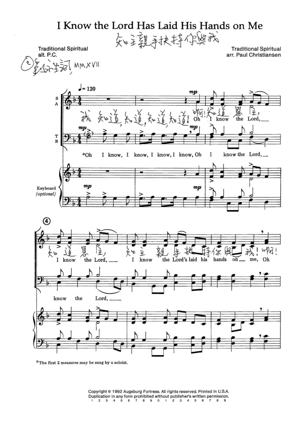 原詞: Traditional Spiritual