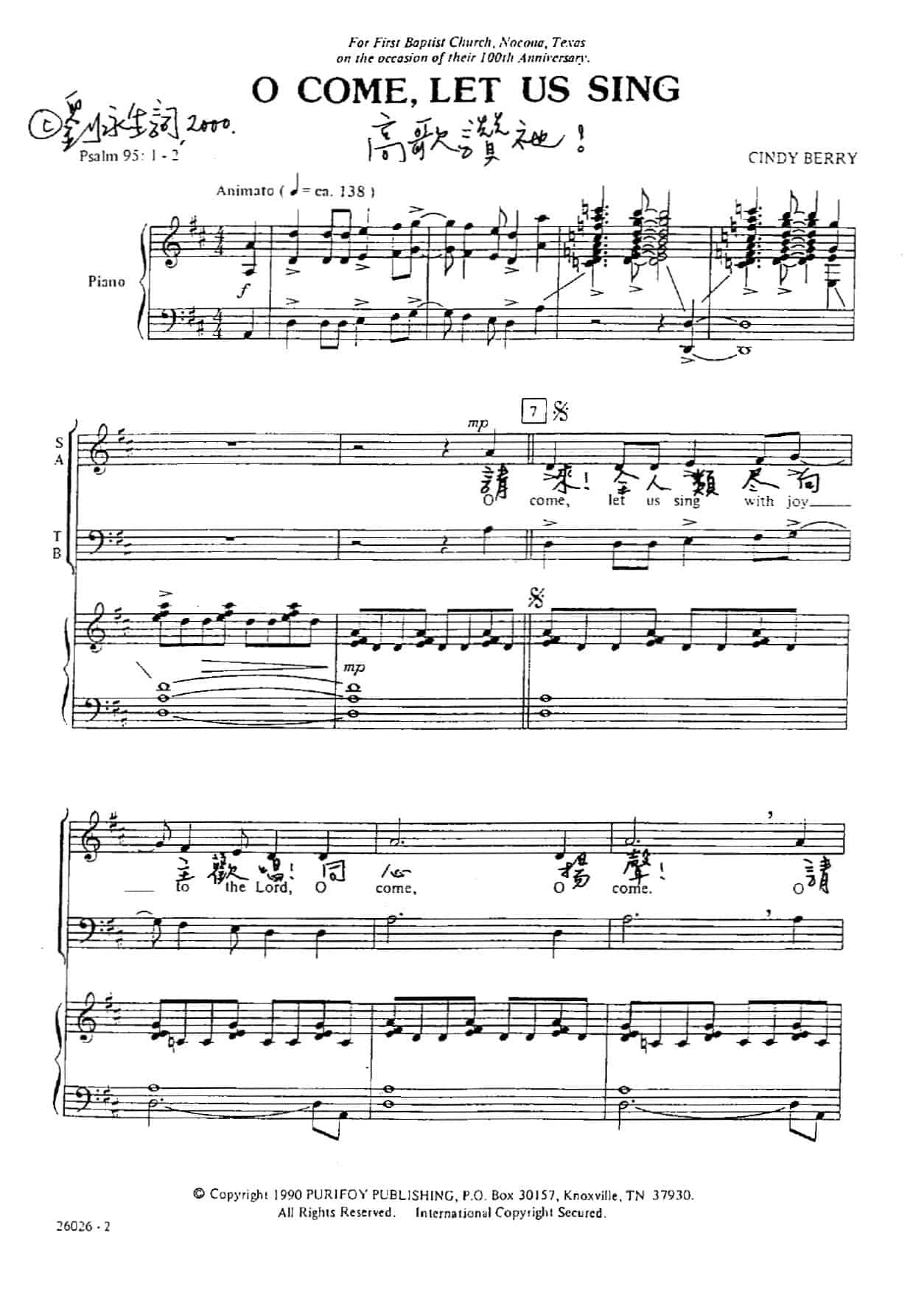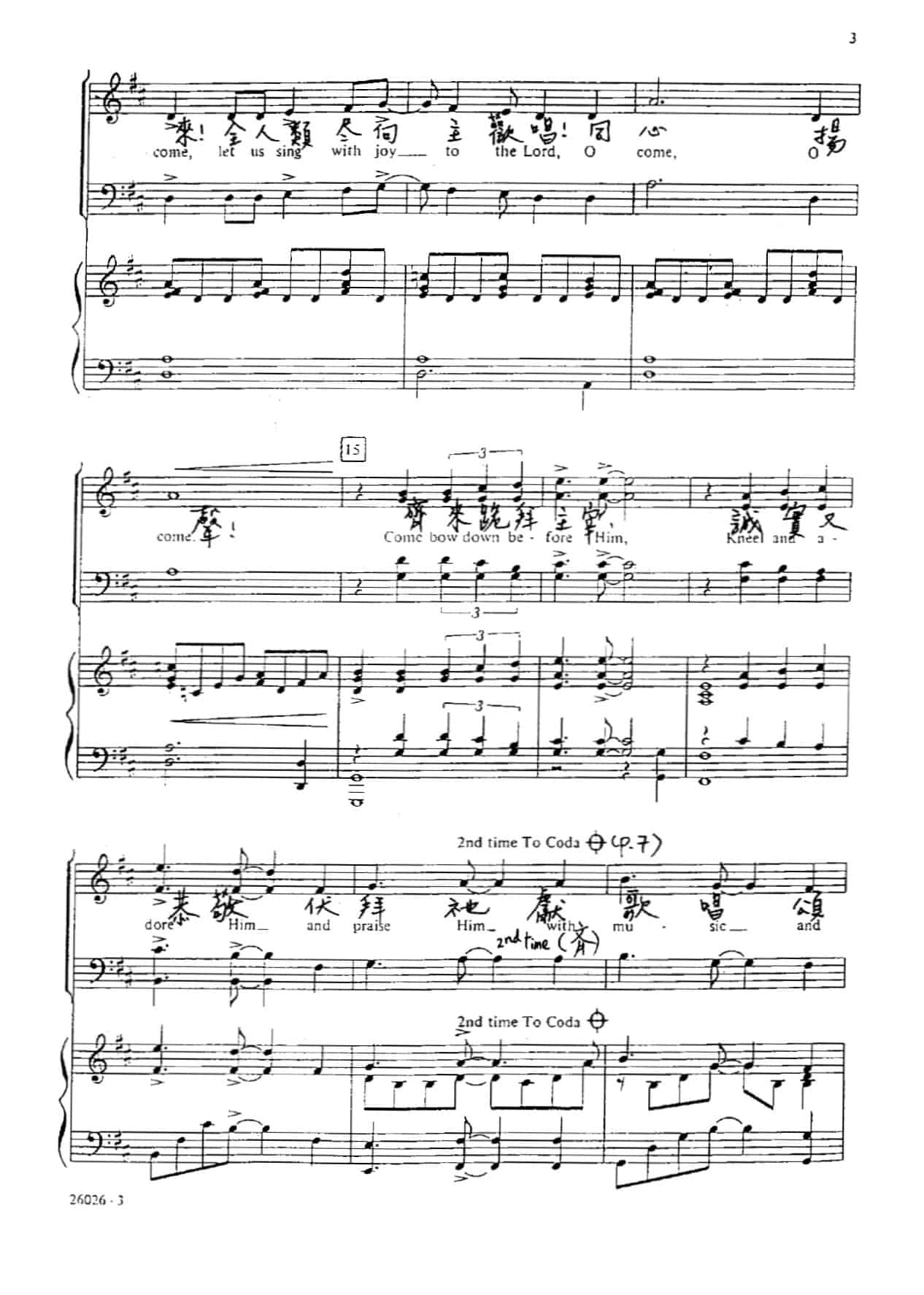 (來啊!全人類盡向主歡唱!同心揚聲!)