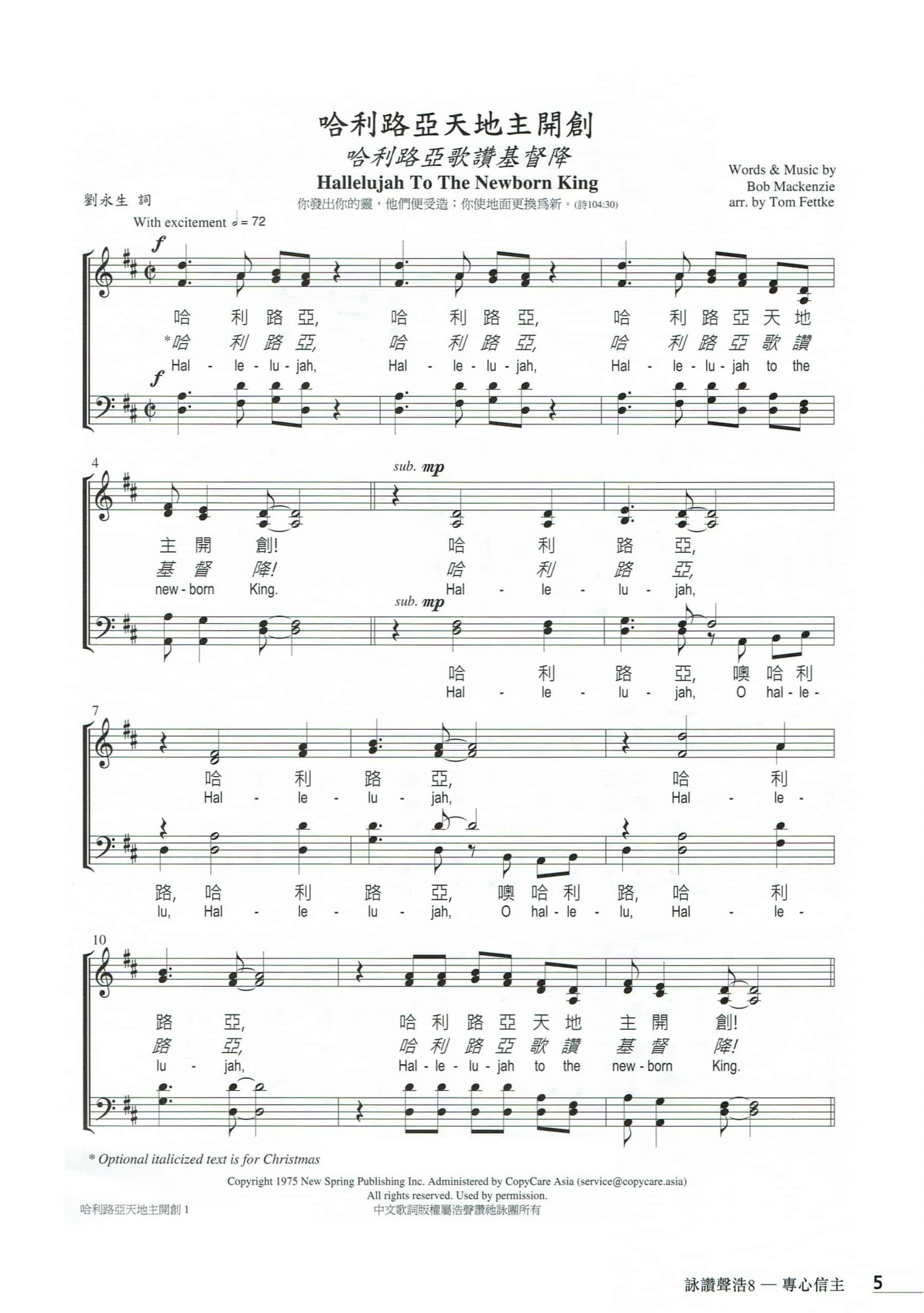哈利路亞天地主開創 (哈利路亞歌讚基督降) Hallelujah to the Newborn King