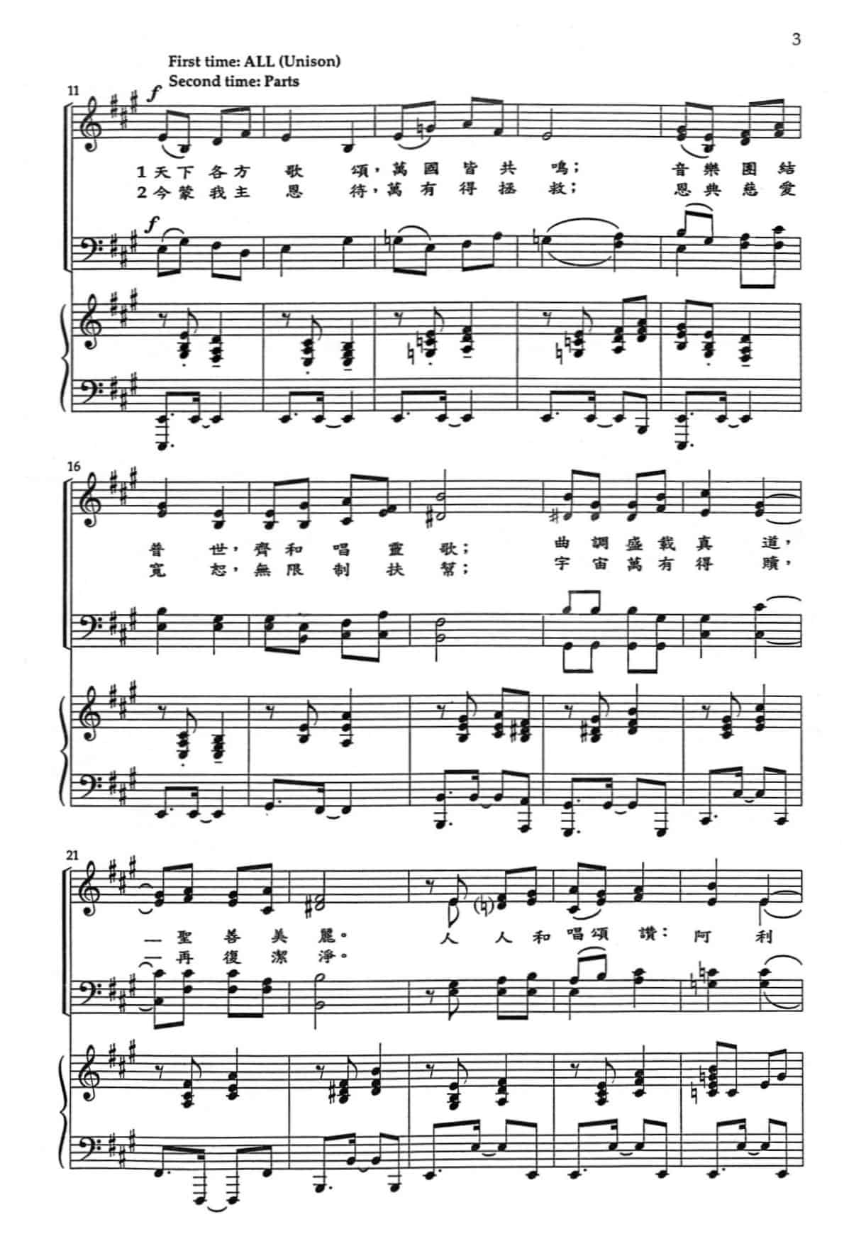 地上萬族 盡向恩主獻心, 歌讚頌揚!